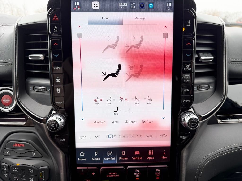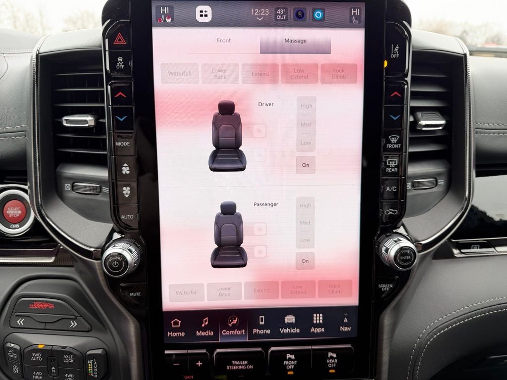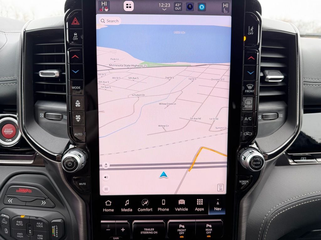Built for high-performance capability, the Ram 1500 RHO pairs advanced 4x4 engineering with a robust powertrain and heavy-duty components designed to handle demanding terrain and towing needs. The Trailer Tow Group enhances capability with trailer tire pressure monitoring, trailer light check and trailer reverse steering control, while a 12-way trailer connector and 240-amp alternator support serious hauling and accessory demands. Whether towing recreational equipment or navigating challenging conditions in Minnesota, this RHO is built for confidence.