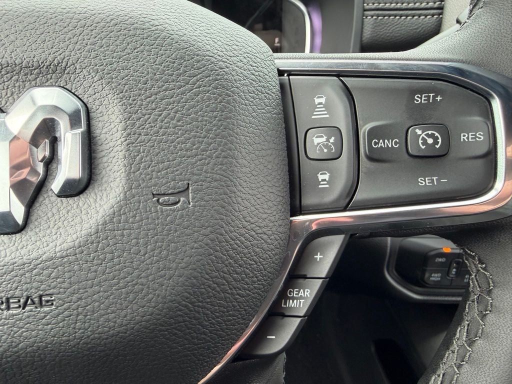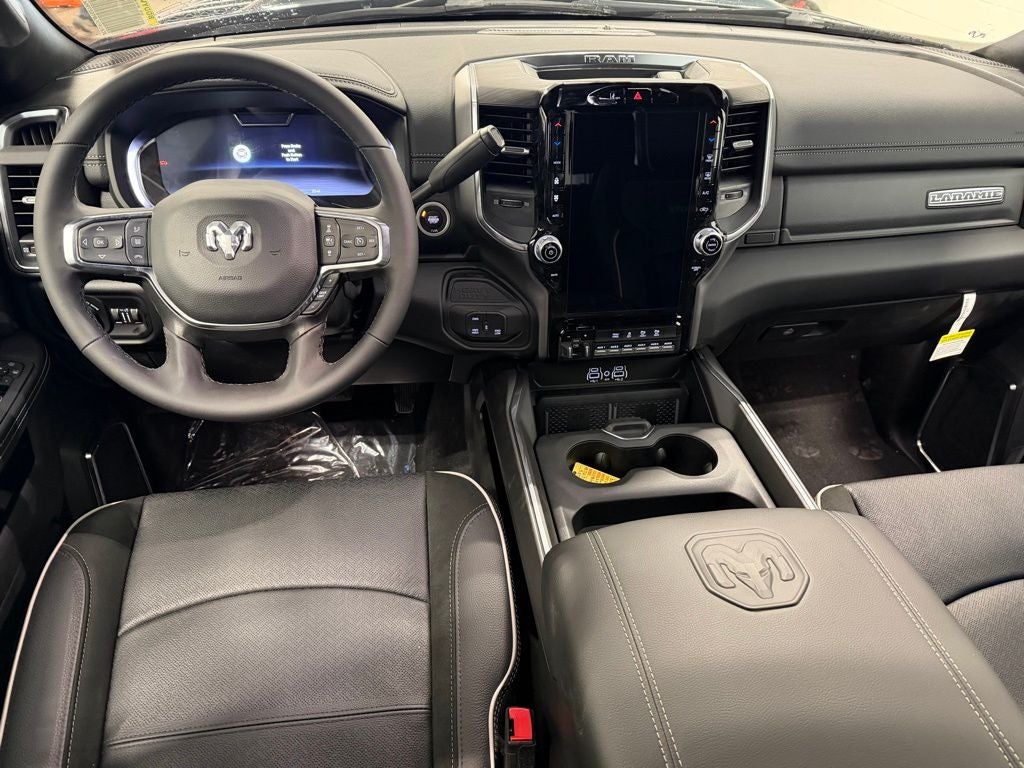 Inside the spacious Crew Cab, the Laramie Level 1 Plus Equipment Group provides premium comfort and advanced technology. Leather-trimmed bucket seats offer refined support, while second-row in-floor storage bins add practical versatility. Power heat, fold, and telescoping memory mirrors with automatic adjust-in-reverse and auto-dimming capability enhance visibility when towing. Dual wireless charging keeps devices powered, and rain-sensitive windshield wipers add convenience during changing weather.