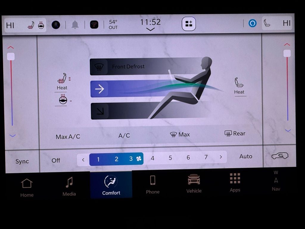 Technology inside includes the Uconnect touchscreen system with Apple CarPlay and Android Auto, voice-activated controls, advanced navigation options, and premium audio capability. Driver-assistance features such as adaptive cruise control, blind-spot monitoring, rear cross-path detection, lane-keeping assistance, and ParkSense parking support help enhance safety for families and commuters.
