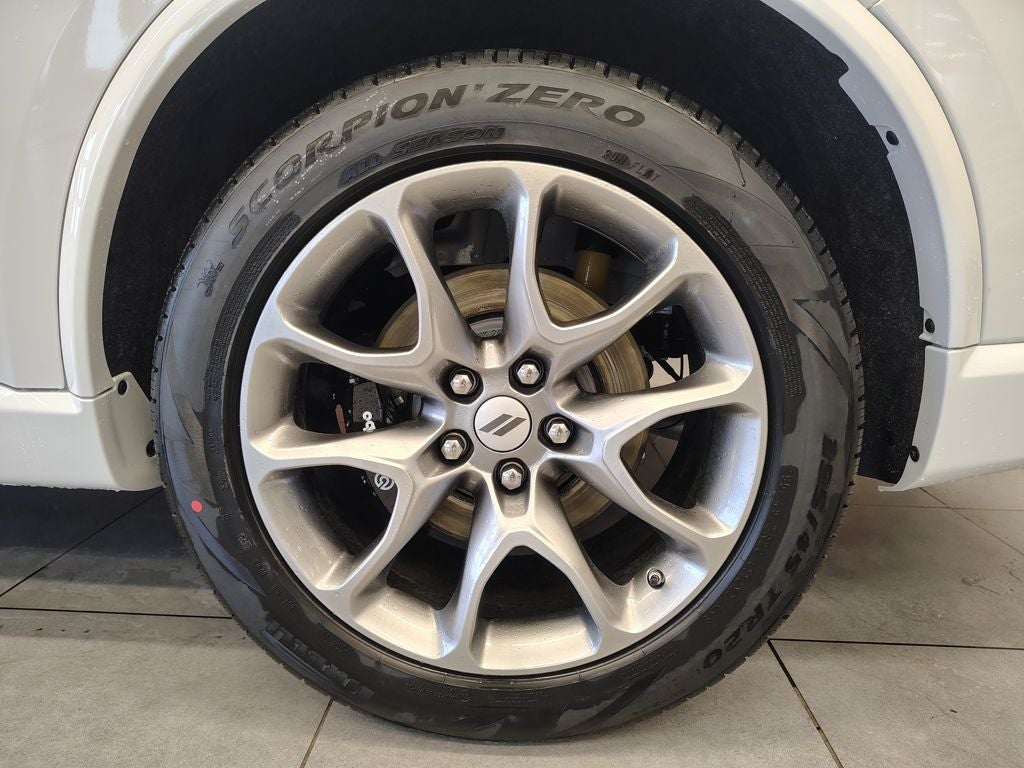 Technology and connectivity are seamlessly integrated through a modern infotainment system, premium audio, and multiple USB charging ports for front and rear passengers. The six-passenger configuration with second-row captains chairs offers comfort and flexibility for families or road trips, while aggressive 20-inch satin carbon wheels and performance tires give the Durango a commanding road presence.
