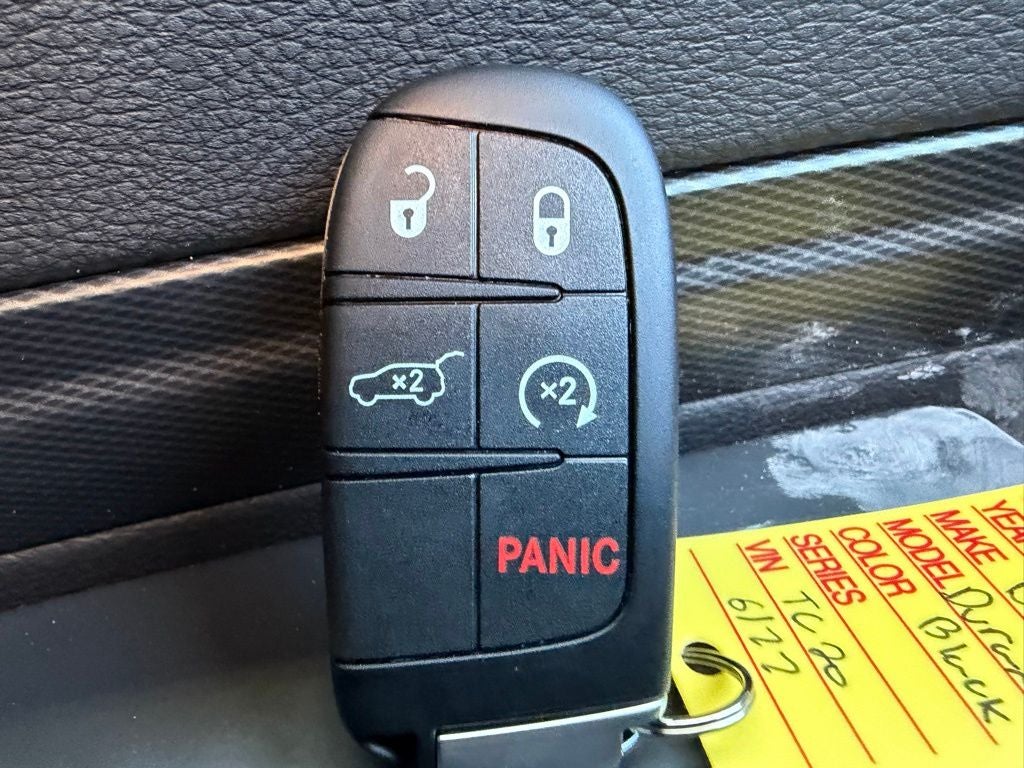 Performance enthusiasts will appreciate the factory Tow N Go Package, which transforms this Durango into a true high-performance SUV. Highlights include Brembo brakes, a performance-tuned suspension with adaptive damping, electronic limited-slip rear differential, Quadra-Trac active on-demand all-wheel drive, and selectable Sport, Track, Tow, and Snow drive modes. The aggressive stance is completed by 20-inch satin carbon wheels wrapped in Pirelli all-season performance tires, while the high-performance exhaust and active noise control system deliver an engaging yet refined sound. Towing capability is reinforced with a Class IV receiver hitch, trailer brake controller, automatic headlamp leveling, and integrated roof rail crossbars. Second-row fold-and-tumble captains chairs provide comfortable six-passenger seating while maintaining flexible cargo space.
