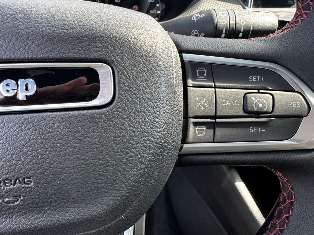 Inside, the Compass Trailhawk balances durability with modern comfort. Standard features include premium cloth and leather-trimmed seating, heated front seats, a heated steering wheel, dual-zone automatic climate control, and a spacious cabin with flexible cargo space. The Uconnect 5 system with a large touchscreen offers wireless Apple CarPlay, Android Auto, Bluetooth® connectivity, and available navigation, keeping you connected and in control on every journey.