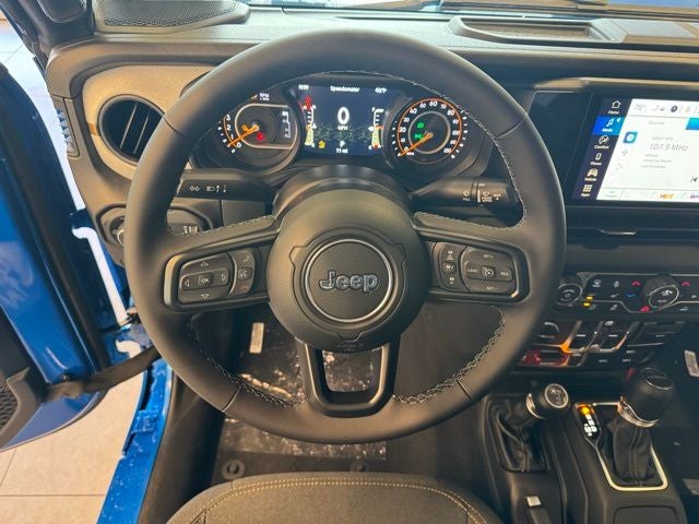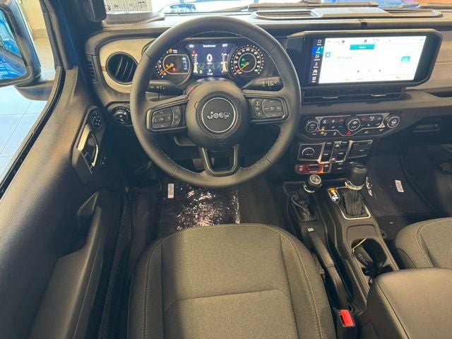 The interior combines durable Jeep utility with elevated comfort. The Convenience Group package enhances cold-weather driving with heated front seats, a heated steering wheel, and remote startperfect for Minnesota winters. Automatic temperature control keeps the cabin comfortable year-round, while passive entry adds seamless access. The premium-wrapped steering wheel, illuminated vanity mirrors, and universal garage-door opener provide added convenience, and the Black Freedom Top three-piece hardtop offers secure four-season driving with open-air flexibility when summer arrives.