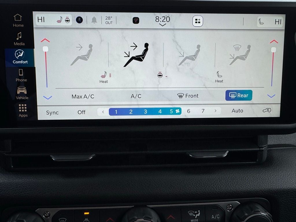 Paired with the 8-speed automatic 850RE transmission, this Wrangler delivers smooth shifting and strong low-end control. The Sky One-Touch Power-Top provides open-air freedom at the push of a button, with removable rear quarter windows, a power-top storage bag, a rear defroster, and a rear wiper/washer system.