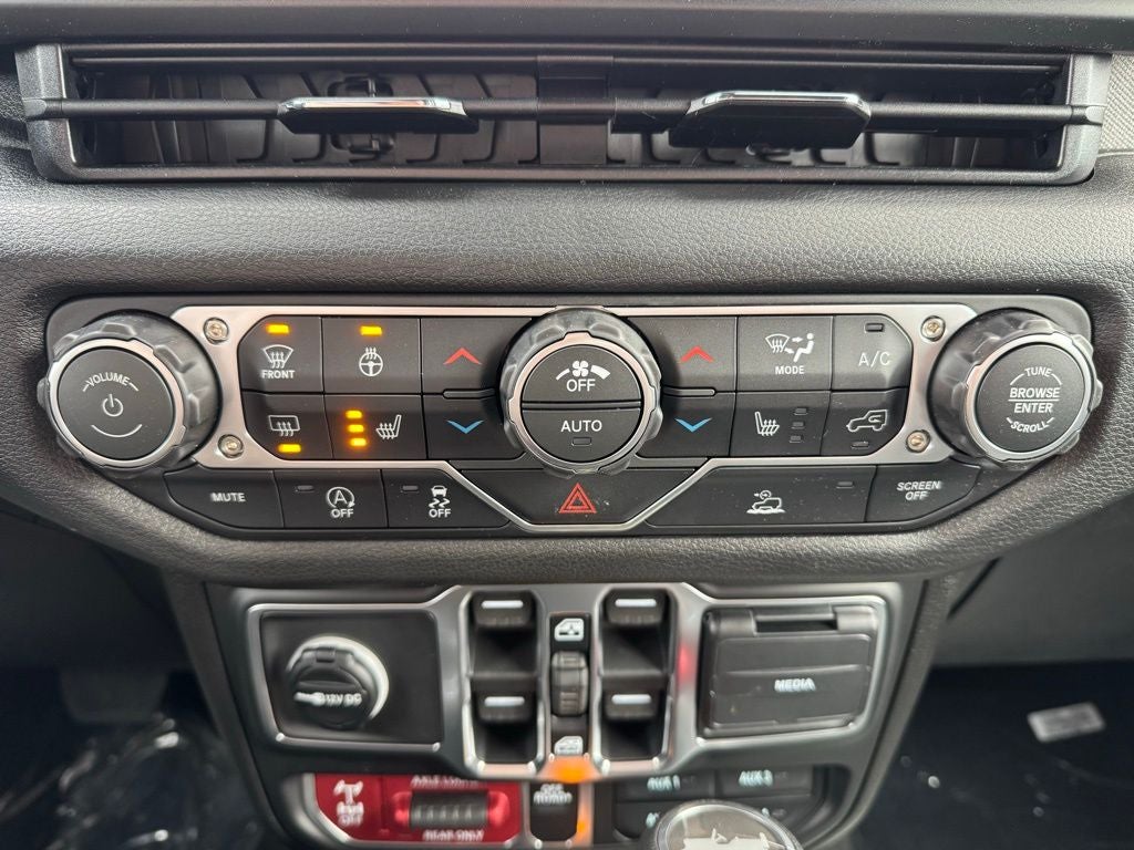 This Willys model is significantly upgraded with the Customer Preferred Package 24W, adding trail-focused components like a 4.10 rear axle ratio, conventional front differential, Tru-Lok rear axle, Willys-tuned suspension, LT285/70R17 mud-terrain tires, and 17-inch painted black wheels. The Off-Road Plus mode, heavy-duty Dana 44 front and rear axles, rock-protection sill rails, and a mold-in-color Rubicon Highline flare system further enhance capability. Corning Gorilla Glass windshield construction adds durability against debris and harsh weather. LED fog lamps, LED premium reflector headlamps, daytime running lamp accents, and deep-tint sunscreen windows enhance visibility and style.