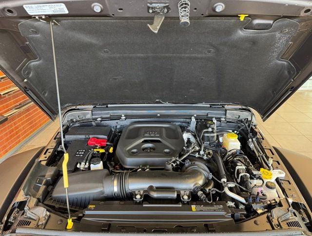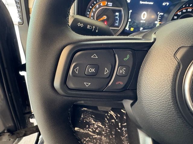 Inside, the Wrangler Willys offers a refined cabin designed for comfort and functionality. The Convenience Group enhances the driving experience with heated front seats, a heated steering wheel, automatic temperature control, and a remote-start systemideal for cold Monticello mornings. A 7-inch digital information cluster display provides clear vehicle data, while the Uconnect infotainment system integrates navigation, voice command, and smartphone connectivity for hands-free control. All-weather Mopar floor mats add durability and protection from mud, snow, and dirt.