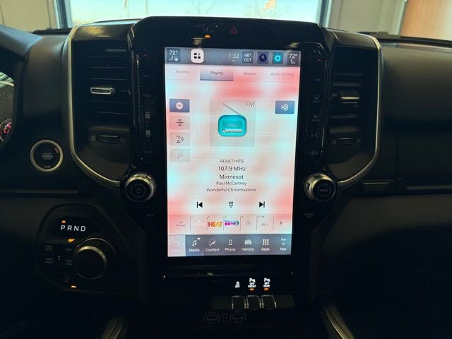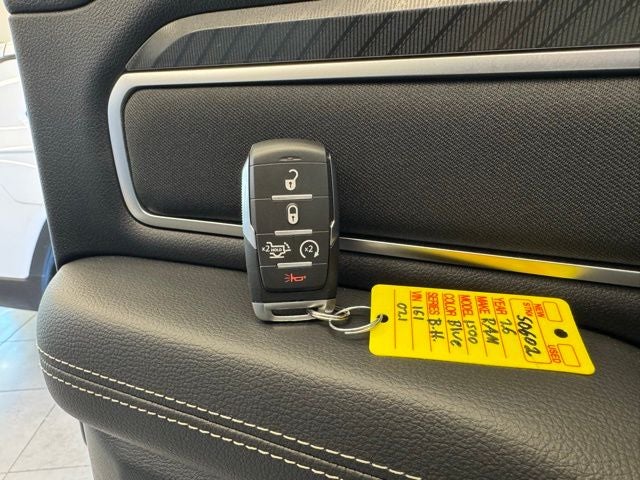Inside, the Big Horn Level 2 Equipment Group introduces significant upgrades, including heated front seats, a heated steering wheel, an 8-way power driver seat with 2-way power lumbar support, dual-zone automatic temperature control, rear 60/40 folding seats, rear center armrest, automatic-dimming rearview mirror, leather-wrapped steering wheel, front and rear map pockets, universal garage-door opener, and connected navigation through Uconnect 5 Nav with a 12-inch touchscreen display. Additional conveniences include configurable drive modes, power adjustable pedals, 2nd-row in-floor storage bins, a power tailgate release, 9 amplified speakers with subwoofer, SiriusXM 360L, and a 115-volt auxiliary rear power outlet.