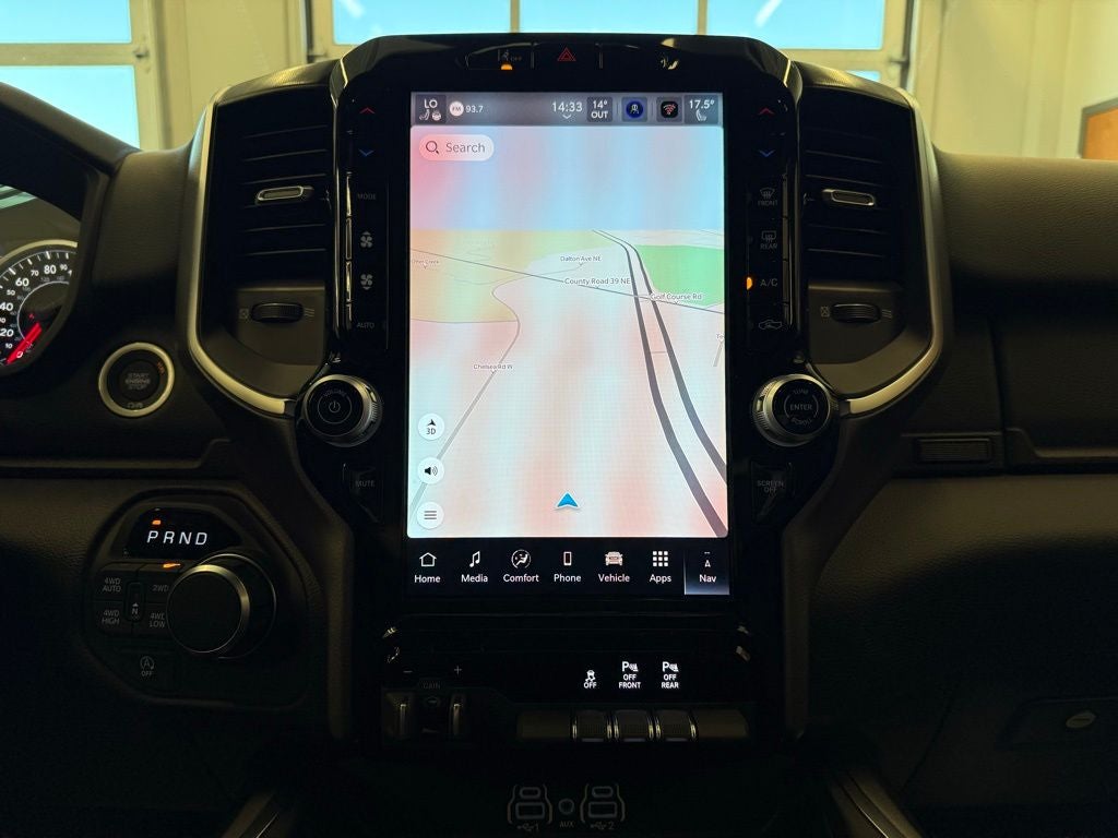 Technology takes center stage with the advanced Uconnect 5 NAV system displayed on a massive 12-inch touchscreen. It includes integrated navigation, Apple CarPlay, Android Auto, and voice command for seamless connectivity. A premium 9-speaker sound system with subwoofer delivers immersive audio, while the 7-inch digital driver display keeps vital information front and center. Additional features like a power-sliding rear window, universal garage door opener, and automatic-dimming mirror further enhance comfort and convenience.