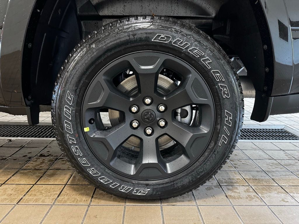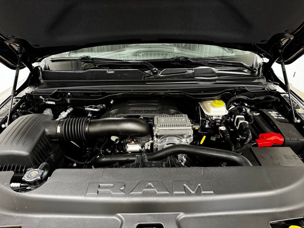 Inside, the spacious Crew Cab configuration delivers impressive comfort and versatility. The Big Horn Level 2 Equipment Group adds heated front seats, a heated leather-wrapped steering wheel, dual-zone automatic climate control, and an eight-way power driver seat with lumbar adjustment for personalized comfort during long drives. Rear passengers benefit from 60/40 folding seats and in-floor storage bins, making it easy to carry both passengers and gear. Technology is front and center with Uconnect 5 NAV and a 12-inch touchscreen display, offering navigation, SiriusXM 360L, smartphone integration, Connected Travel and Traffic Services, and a 400-watt inverter for powering tools and devices. The premium nine-speaker amplified sound system with subwoofer delivers crisp, powerful audio throughout the cabin. Additional conveniences include a power tailgate release, rear power-sliding window, automatic-dimming rearview mirror, universal garage door opener, and multiple 115-volt auxiliary power outlets.