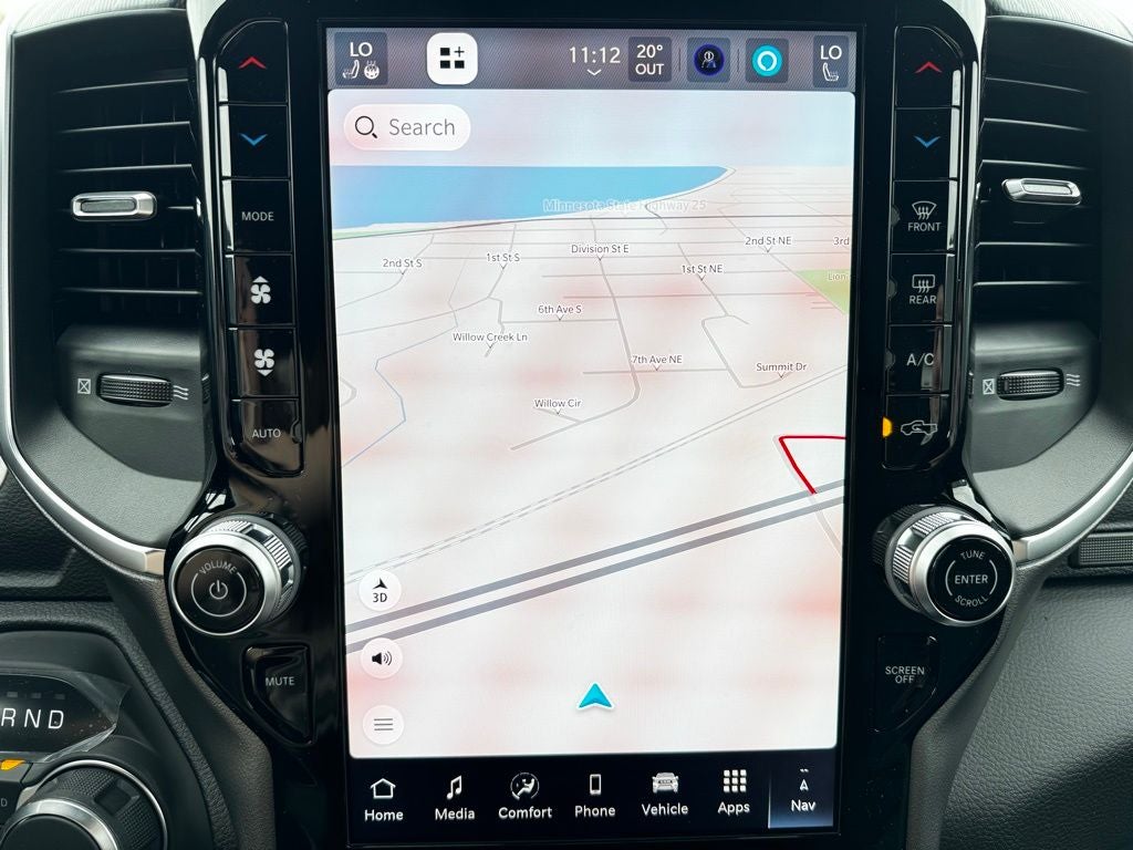 Under the hood, this Big Horn is powered by the legendary 5.7-liter HEMI V8 engine with eTorque mild-hybrid technology. Paired with a 3.92 rear axle ratio, this engine delivers exceptional towing capability and strong acceleration while optimizing efficiency with automatic stop/start functionality. The G/T Exhaust system enhances the trucks aggressive sound, while Active Noise-Control technology keeps the cabin quiet and composed on the highway. A 33-gallon fuel tank extends range for long Minnesota drives, and the trailer brake controller provides extra confidence when towing boats, campers, or trailers.