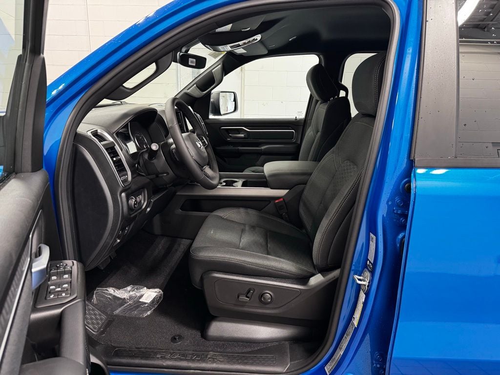 Inside, the spacious Crew Cab configuration is designed for comfort and versatility. The Big Horn Level 2 Equipment Group adds heated front seats, a heated leather-wrapped steering wheel, dual-zone automatic climate control, and an eight-way power driver seat with lumbar adjustment for customized comfort. Rear passengers benefit from 60/40 split-folding seats and in-floor storage bins, making it easy to carry gear and passengers. A 12-inch Uconnect 5 NAV touchscreen infotainment system with navigation, SiriusXM 360L, Connected Travel and Traffic Services, and smartphone integration keeps you connected and informed. The 400W inverter and multiple 115-volt outlets provide power for tools or devices, while the nine-speaker amplified sound system with subwoofer delivers an immersive audio experience.