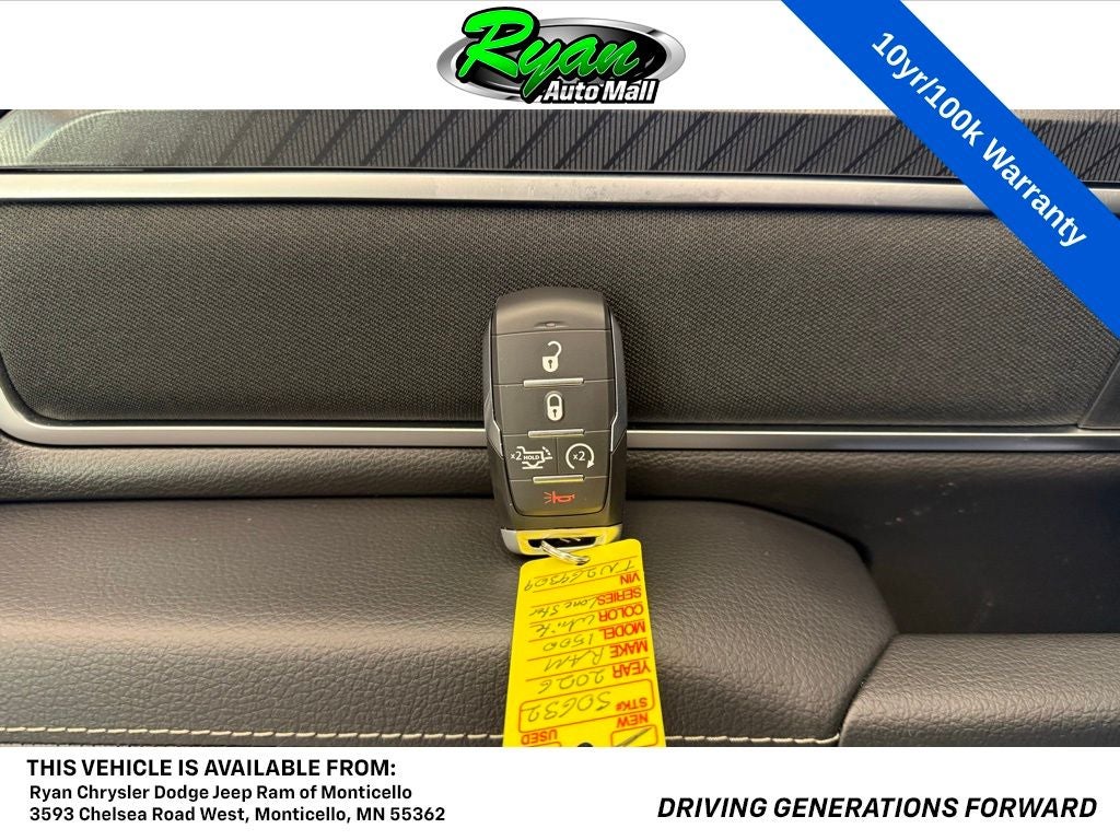 Inside, the Big Horn Level 2 Equipment Group transforms the cabin with premium comfort and convenience enhancements. Features include heated front seats, a heated leather-wrapped steering wheel, an 8-way power drivers seat with lumbar support, a 60/40 split-folding rear bench, dual-zone automatic climate control, automatic-dimming rearview mirror, power-folding exterior mirrors, and a universal garage door opener. Practical touches like second-row in-floor storage bins, front seat-back map pockets, a rear sliding window, and a 115-volt auxiliary outlet make this truck ready for daily use.