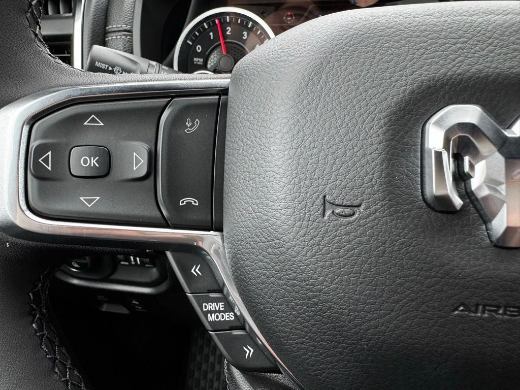 Safety and driver-assist features are abundant, including adaptive cruise control with stop and go, full-speed forward-collision warning plus, pedestrian emergency braking, blind-spot and cross-path detection, active lane management, ParkSense front and rear park assist, and a ParkView rear backup camera. Configurable drive modes further enhance confidence and control, making the Ram 1500 Laramie as safe as it is capable.