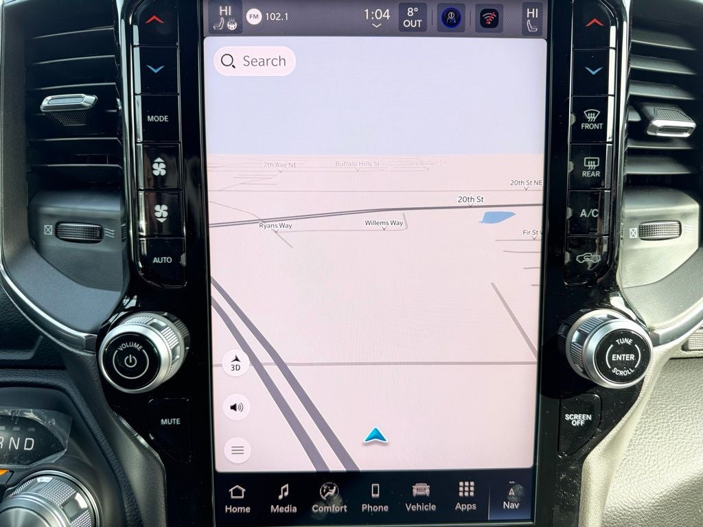 A steel standard hood, body-color exterior accents, and bold styling give this Ram a confident presence on Buffalo streets, while advanced safety and driver-assist features such as blind spot monitoring, adaptive cruise control, and front and rear park assist help enhance awareness in traffic and tight parking situations. With a spacious Crew Cab layout and flexible rear seating, this truck is ready to carry both passengers and cargo with ease.