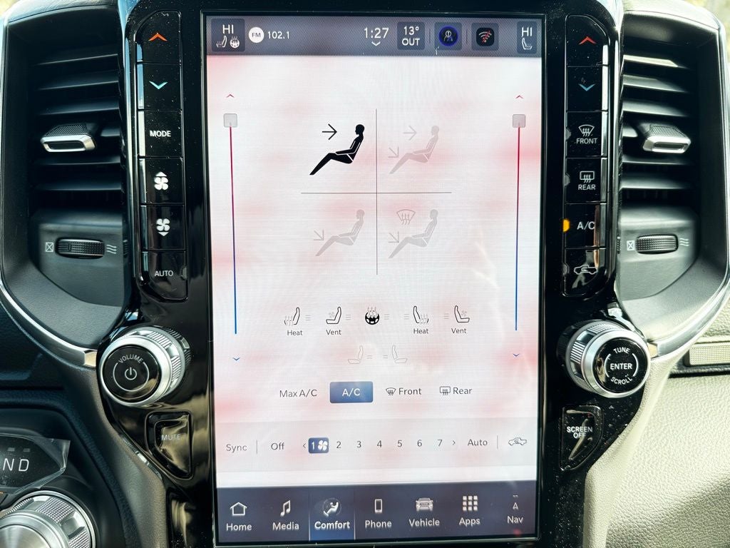 Technology is at the heart of the Ram 1500 Laramie experience. The Uconnect 5 NAV infotainment system with a 12-inch touchscreen display offers wireless Apple CarPlay, Android Auto, and navigation integration for seamless connectivity on the go. A 7-inch driver information digital display keeps essential performance and navigation data front and center, while premium audio options provide crisp, immersive sound throughout the cabin.