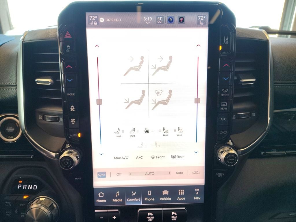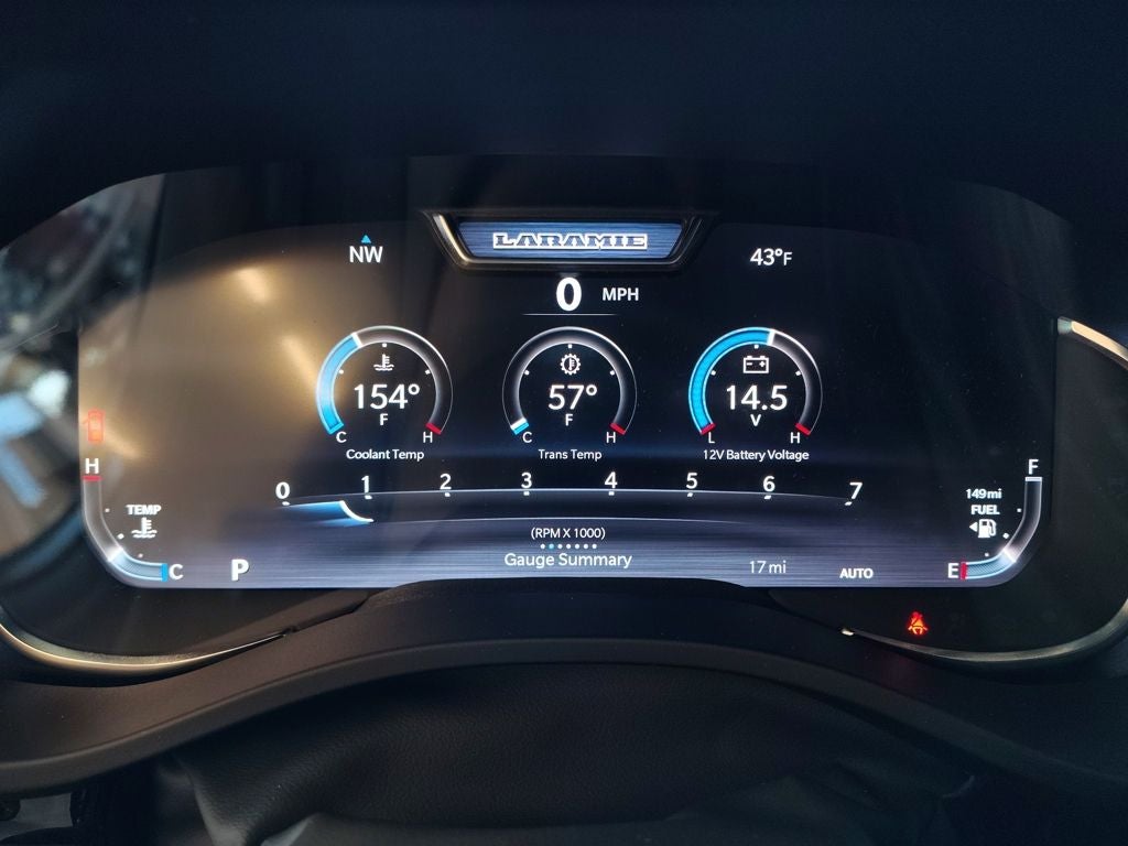 Inside, the Laramie Level 2 Equipment Group transforms the cabin into a refined and technology-rich environment. A 12-inch TFT digital cluster display provides customizable driver information, while the expansive Uconnect 5 NAV system with a 14.4-inch touchscreen serves as the command center for navigation, connectivity and entertainment. The front passenger interactive display enhances the co-pilot experience, and a 19-speaker Harman Kardon premium audio system delivers exceptional sound quality. Rain-sensitive windshield wipers, a power tailgate and premium materials throughout the interior reinforce the Laramies upscale character.