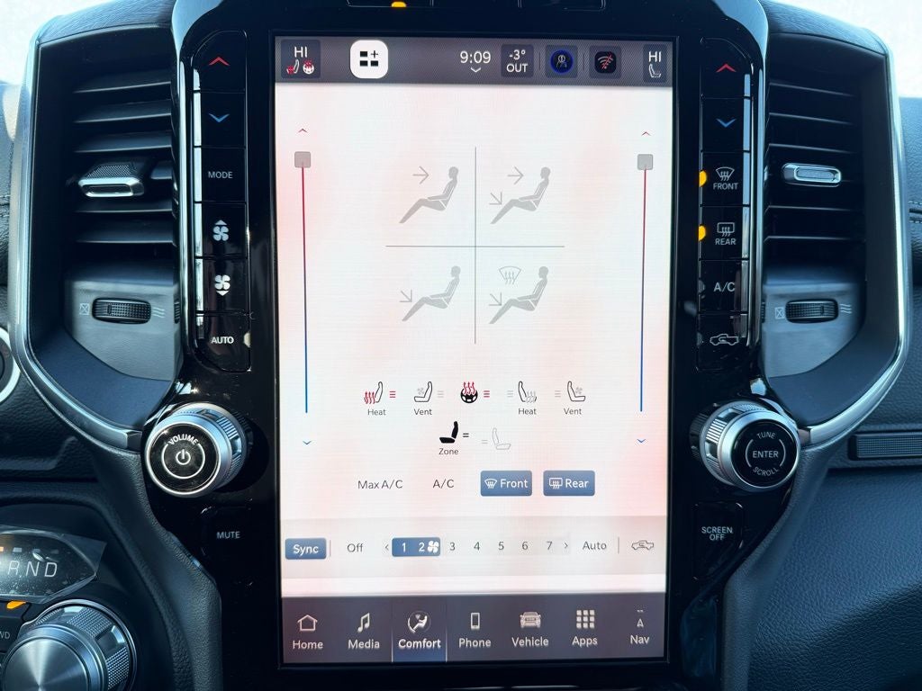 Inside the spacious Crew Cab, the Laramie trim delivers a refined and technology-rich environment designed for comfort on every drive. Premium materials and thoughtful craftsmanship are paired with advanced features including a large touchscreen Uconnect infotainment system, smartphone integration, multiple USB ports, and a premium audio experience. The Laramie Preferred Package adds power deployable running boards for easy entry and exit, a dual-pane panoramic sunroof that fills the cabin with natural light, and a trailer brake controller for enhanced towing control. The Laramie Level 1 Equipment Group further improves convenience with rain-sensitive windshield wipers and a power tailgate release, making everyday tasks easier and more efficient.