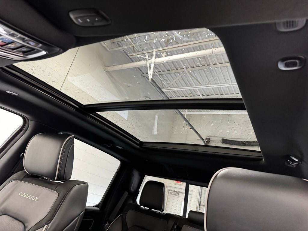 The exterior of this Laramie is finished in striking Granite Crystal Metallic Clear-Coat paint, creating a commanding yet refined appearance. Body-color front and rear bumpers with integrated step pads, accent-color premium power mirrors, and polished chrome details add to its premium design. The Laramie Preferred Package elevates convenience with power-deployable running boards, tow hooks, and a power tailgate release, while the available dual-pane panoramic sunroof brightens the cabin with natural light and fresh air. Rain-sensitive windshield wipers add intelligent functionality, automatically adjusting to changing weather conditions.