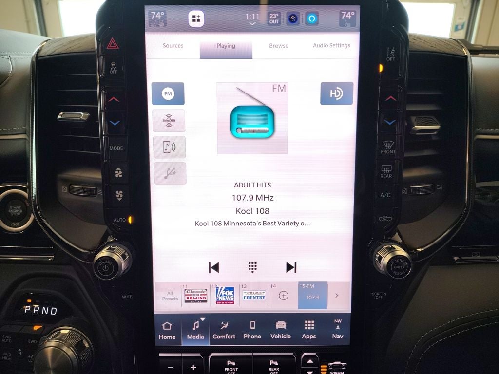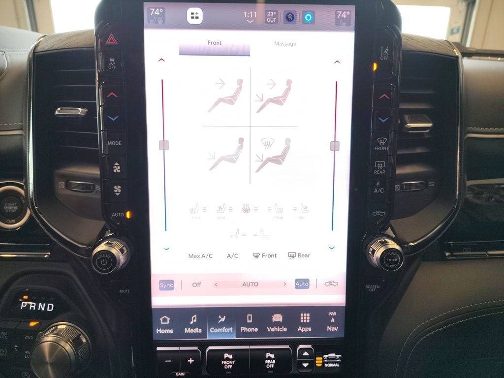 Inside the spacious Crew Cab, the Ram 1500 Limited delivers exceptional craftsmanship and cutting-edge technology. Premium materials, refined finishes, and thoughtful design create a luxurious environment for both driver and passengers. The Limited Level A Equipment Group elevates comfort and innovation with a massive 14.4-inch Uconnect 5 NAV touchscreen, head-up display, digital rearview mirror, and a premium surround-view camera system. Hands-Free Active Driving Assist, Traffic Sign Recognition, Intersection Collision Assist, Evasive Steering Assist, and Drowsy Driver Detection provide advanced safety and driver confidence on every journey. A dual-pane panoramic sunroof fills the cabin with natural light, while the exterior 115-volt outlet and powerful 240-amp alternator enhance real-world utility.
