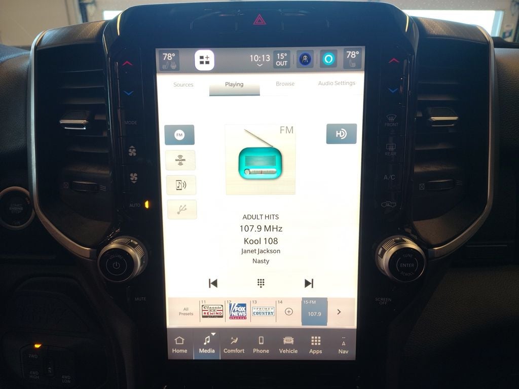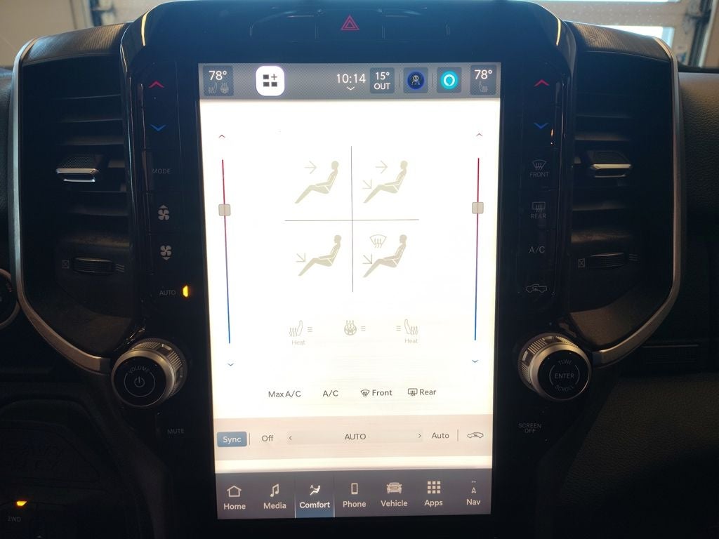 This Big Horn is finished in Granite Crystal Metallic Clear-Coat paint and enhanced with the Night Edition, giving it a bold, modern look with black exterior accents and 20-inch black painted aluminum wheels. Premium cloth bucket seating, heated front seats, and a heated steering wheel add comfort on cold Monticello mornings, while the spacious Crew Cab provides excellent room for passengers and gear alike. The Big Horn Level 1 Plus Equipment Group adds thoughtful upgrades including a 12-inch Uconnect 5 touchscreen with built-in navigation, wireless smartphone integration, steering-wheel-mounted audio controls, and a premium Alpine sound system with subwoofer for an elevated driving experience.