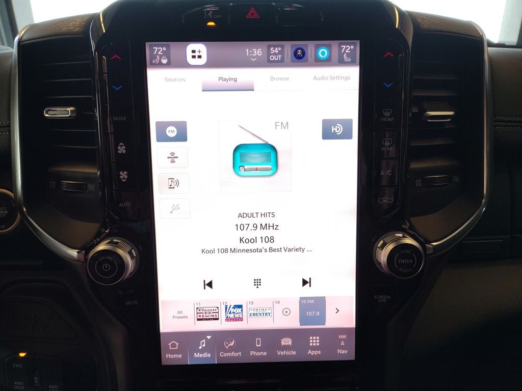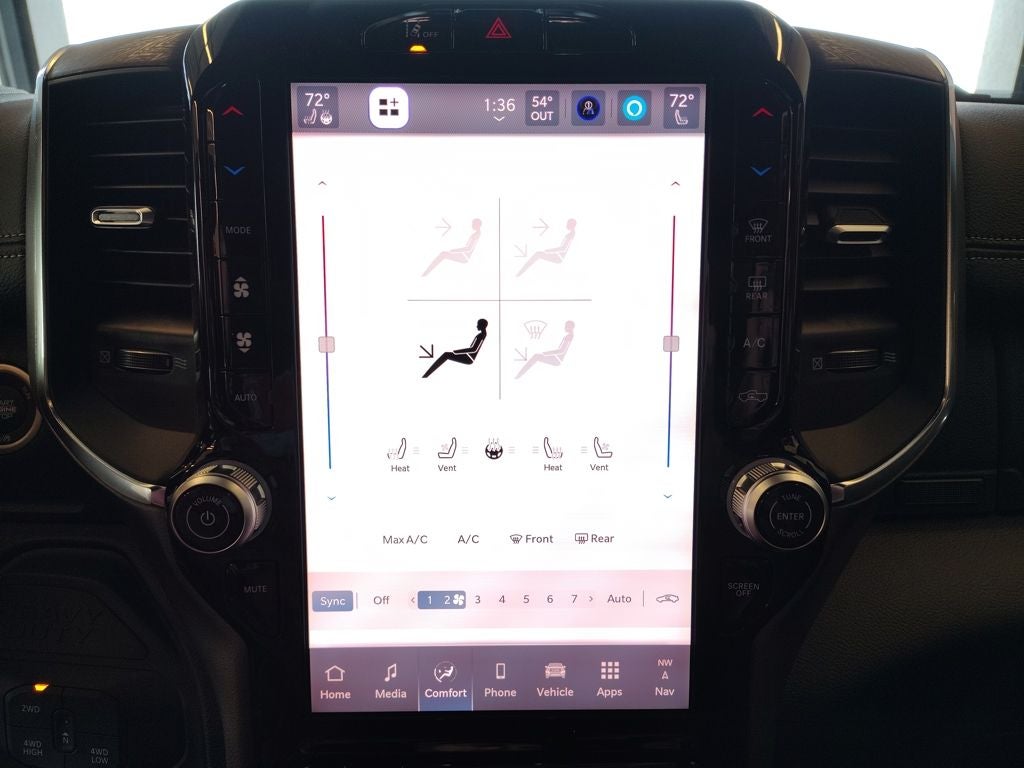 Inside the spacious Crew Cab, the Laramie Level 1 Plus Equipment Group elevates comfort and innovation. Leather-trimmed bucket seats provide premium support, while second-row in-floor storage bins offer practical versatility. Power heat, fold, and telescoping memory mirrors with automatic adjust-in-reverse and auto-dimming capability enhance towing visibility. Dual wireless charging keeps devices powered, and rain-sensitive windshield wipers add everyday convenience.