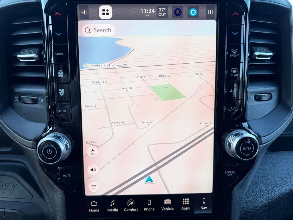 For exterior functionality, heated power-adjustable trailer-tow mirrors with supplemental signals and mirror running lights improve visibility when towing equipment, campers, or utility trailers throughout Wright County. Black Mopar tubular side steps offer added convenience, while LT275/70R18E all-season tires paired with 18-inch steel chrome-clad wheels provide confident traction and durability across Minnesota seasons. An 18-inch steel spare is included for added peace of mind.