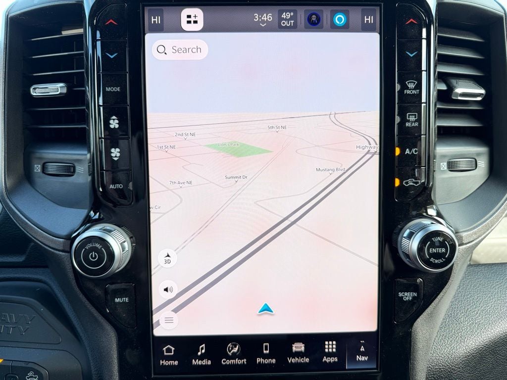 Designed with both function and comfort in mind, the cabin offers a practical yet refined workspace. The Tradesman Level 1 Equipment Group enhances everyday usability with dual-zone automatic climate control, a rear power-sliding window, and convenient features like a 115V AC outlet. The advanced Uconnect 5 system with a 12-inch touchscreen display and built-in navigation keeps you connected and informed, while SiriusXM 360L capability adds entertainment options for long drives across Minnesota. Push-button start, power windows with one-touch operation, and speed-sensitive power locks provide modern convenience.