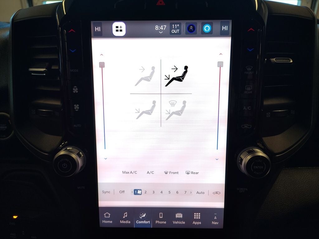 Inside, the Tradesman Level 2 Equipment Group elevates comfort and functionality with a 40/20/40 split bench seat, dual-zone automatic climate control, carpeted flooring with front and rear mats, and a rear power-sliding window. The advanced Uconnect 5 system with a large 12-inch touchscreen display provides navigation, Apple CarPlay, Android Auto, SiriusXM capability, and Ram Connect services with a 4G LTE Wi-Fi hotspot, keeping you connected and productive on the road.