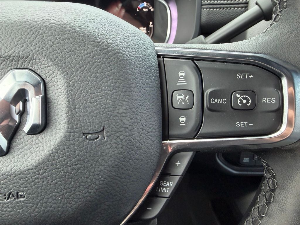 Inside, the Laramie Level 1 Plus Equipment Group surrounds you with premium features, including leather-trimmed bucket seats, dual wireless charging pads, power adjustable pedals with memory, rain-sensitive windshield wipers, second-row in-floor storage bins, and power heat, fold, and telescoping memory mirrors with reverse tilt and auto-dimming functionality. Advanced driver assistance technologies include adaptive steering, active lane management, traffic sign recognition, drowsy driver detection, and a center stop lamp with cargo-view camera for added awareness.