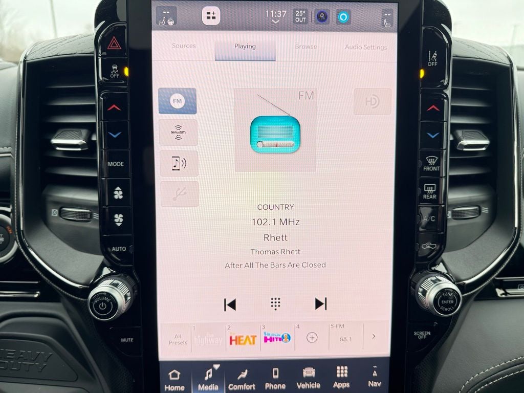 This Limited Night Mega Cab stands out with the striking Forged Blue Metallic exterior paired with the factory Night Edition package, adding black 20-inch aluminum wheels, a body-color grille surround, a sport performance hood, and exclusive blacked-out accents for a bold, modern look across Buffalo and the surrounding Wright County area. The Cold Weather Group equips the truck for Minnesota winters with an engine block heater and Mopar winter front grille cover.