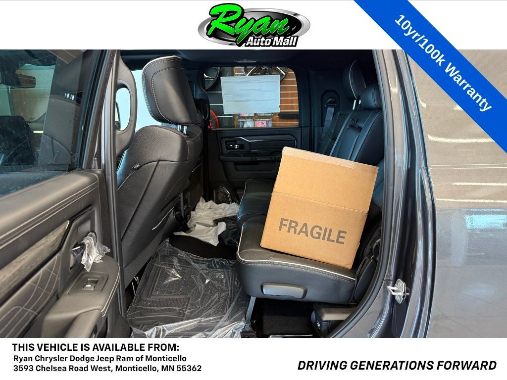 Built for strength, luxury, and modern capability, the 2026 Ram 3500 Limited Night Mega Cab 4x4 is perfectly suited for Monticello-area drivers who expect their truck to handle the heaviest work while delivering premium comfort and advanced technology. Contact us for availability and a test drive today.