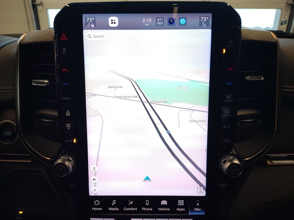 The exterior is finished in Diamond Black Crystal Pearl-Coat paint and enhanced by power deployable running boards, LED bed lighting, clearance lamps, a power sunroof, and a rugged transfer case skid plate for added protection. Practical features like instrument panel-mounted auxiliary switches, a center stop lamp with cargo-view camera, and Mopar accessories further support both work and recreational use in changing Minnesota conditions. The Cold Weather Group, including an engine block heater and winter front grille cover, ensures dependable performance during Monticellos colder months.