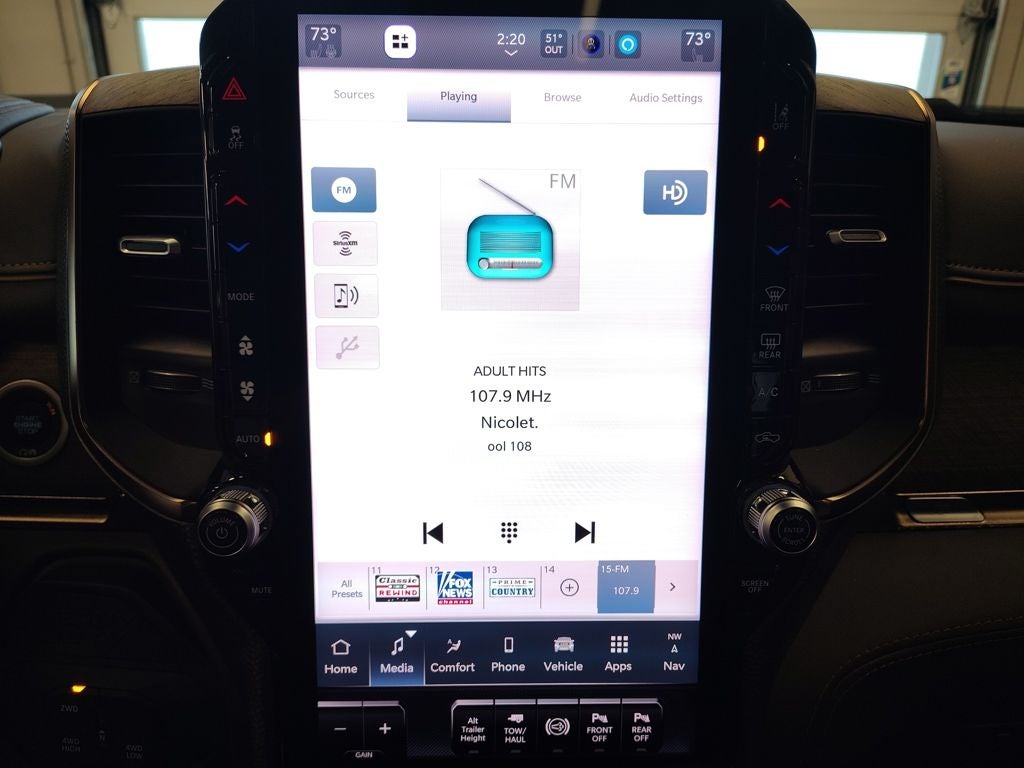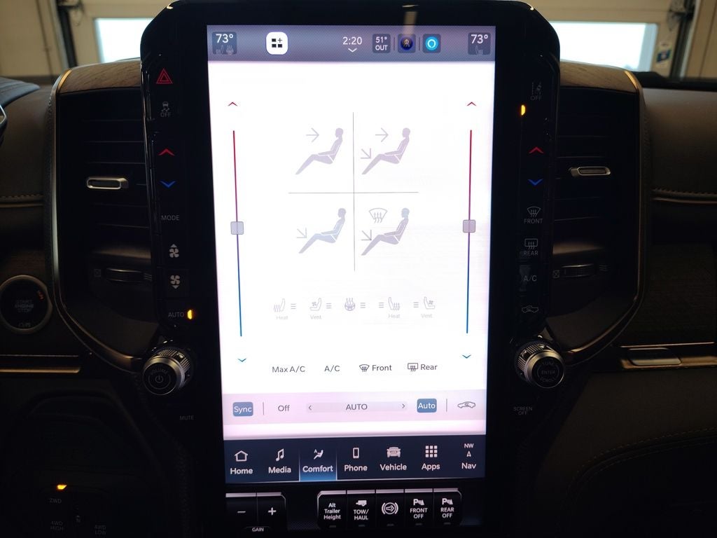 Inside the Mega Cab, the Limited Longhorn trim surrounds you with premium filigree leather seating, real wood instrument panel bezels, warm chrome accents, and luxury front and rear floor mats that reflect the craftsmanship Ram is known for. A large touchscreen infotainment system with navigation capability, a digital instrument cluster, and integrated connectivity keep you informed and in control, while the Longhorn Level 1 Equipment Group adds advanced driver-assist technologies such as traffic sign recognition, drowsy driver detection, and an active lane management system.