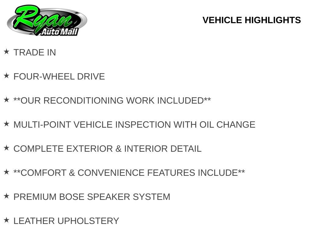 - Audio system feature, Bose premium speaker system with sub-woofer in center console