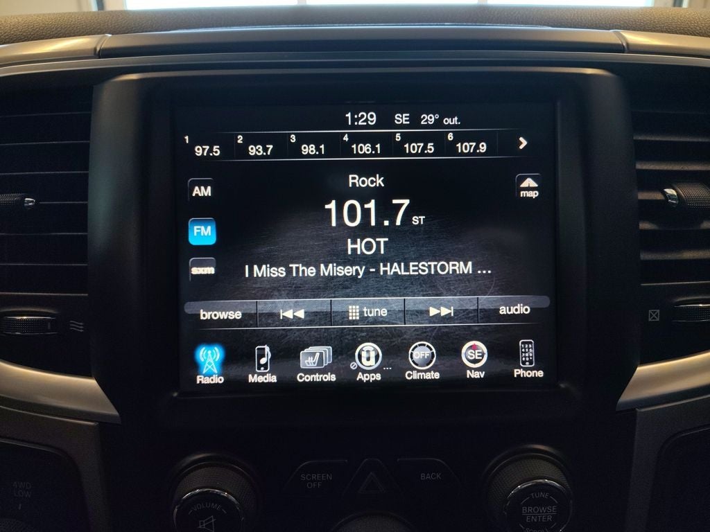 This Ram is a local trade-in, and a free CARFAX Vehicle History Report is available on our website for added peace of mind. At Ryan Chrysler Dodge Jeep Ram in Monticello, this truck has completed our reconditioning process, including a multi-point inspection with oil change, installation of a new engine air filter, and a complete exterior and interior detail to ensure it is ready for its next owner.