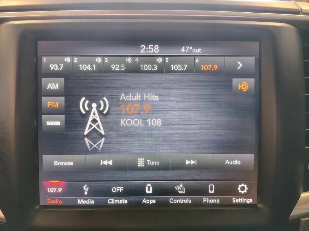 - Radio: Uconnect 4C w/8.4" Display -inc: Google Android Auto, SiriusXM Satellite Radio, No satellite coverage in Hawaii or Alaska, USB Host Flip, HD Radio, Media Hub (2 USB, AUX), 1-Yr SiriusXM Guardian Trial, Air Conditioning ATC w/Dual Zone Control, Humidity Sensor, 8.4" Touchscreen Display, Apple CarPlay