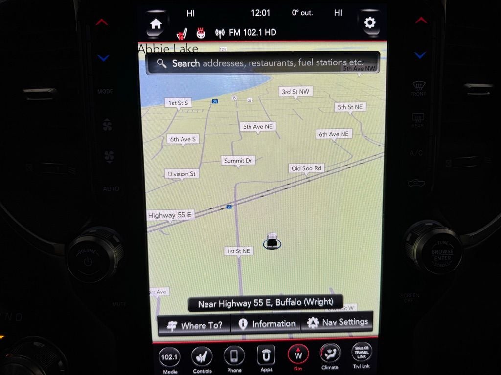 Advanced driver assistance systems include side blind spot monitoring, rear cross traffic detection, a rear vision camera, front and rear park assist with automatic braking, and automatic high-beam headlamps, helping you navigate Buffalo traffic and Minnesota highways with added confidence.