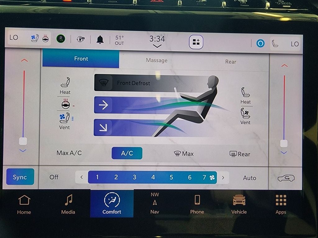 Inside, the Summit trim offers an exceptionally refined cabin with premium leather upholstery and impressive comfort features. Heated and ventilated front seats with massaging functions, heated and ventilated second-row seats, and a heated steering wheel provide luxury in every season. Power-adjustable driver and passenger seats with memory settings help you find the ideal driving position, while multiple zone automatic climate control keeps passengers comfortable. Additional conveniences include a hands-free power liftgate, power sunroof, universal garage door controller, rear window defroster, and a 120-volt power outlet.