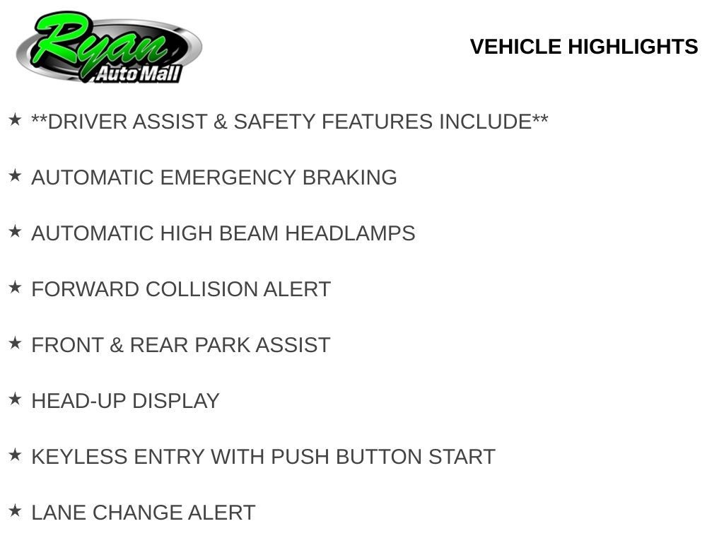 Driver confidence is enhanced with advanced safety features including automatic emergency braking, forward collision alert, pedestrian braking, lane departure warning, lane keep assist, lane change alert, side blind spot monitoring, rear cross traffic detection, surround vision, front and rear park assist, a rear vision camera, and a digital rear camera mirror. A head-up display keeps key information in your line of sight.