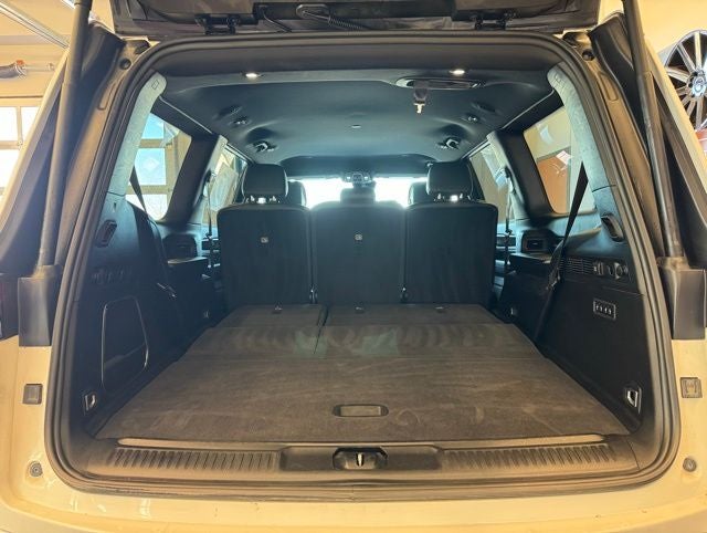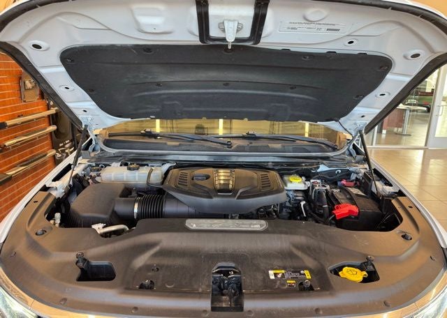 Inside, this three-row SUV provides luxurious accommodations with leather-trimmed seating, heated and ventilated front seats, heated second-row seats, heated steering wheel, and power-adjustable driver and passenger seats with memory settings. The cabin features an advanced 10.1-inch touchscreen display with navigation, Apple CarPlay and Android Auto, 4G LTE Wi-Fi connectivity, wireless device charging, a premium Alpine speaker system, multiple-zone automatic climate control, a power tilt and telescoping steering column, and hands-free power liftgate. Third-row power-fold seating adds flexibility for cargo and passengers, while side assist steps and deep-tinted glass enhance convenience and style.