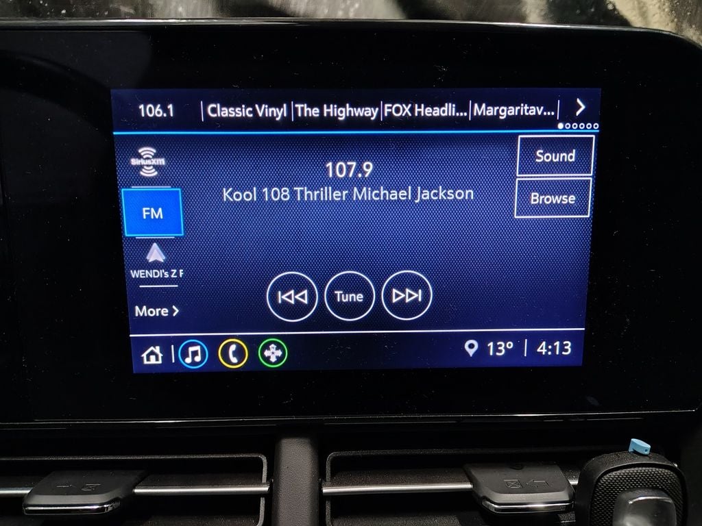 - Audio system, Chevrolet Infotainment 3 system 8" diagonal color touchscreen, AM/FM stereo, Bluetooth® audio streaming for 2 active devices, voice command pass-through to phone, Wireless Apple CarPlay and Wireless Android Auto compatibility