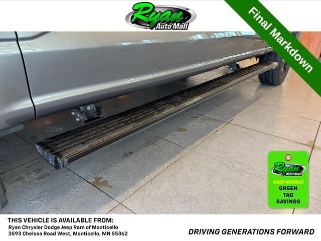 Towing and hauling excellence comes standard with a 5-foot 5-inch cargo bed, power tailgate, trailer brake controller, Class IV receiver hitch, and 3.55 rear axle ratio—ideal for boats or trailers to the Mississippi River or weekend adventures at Crow-Hassan Park. Utility is enhanced with power retractable running boards, tow hooks, deep-tinted glass, and 20-inch gloss-black painted aluminum wheels that make a commanding statement.