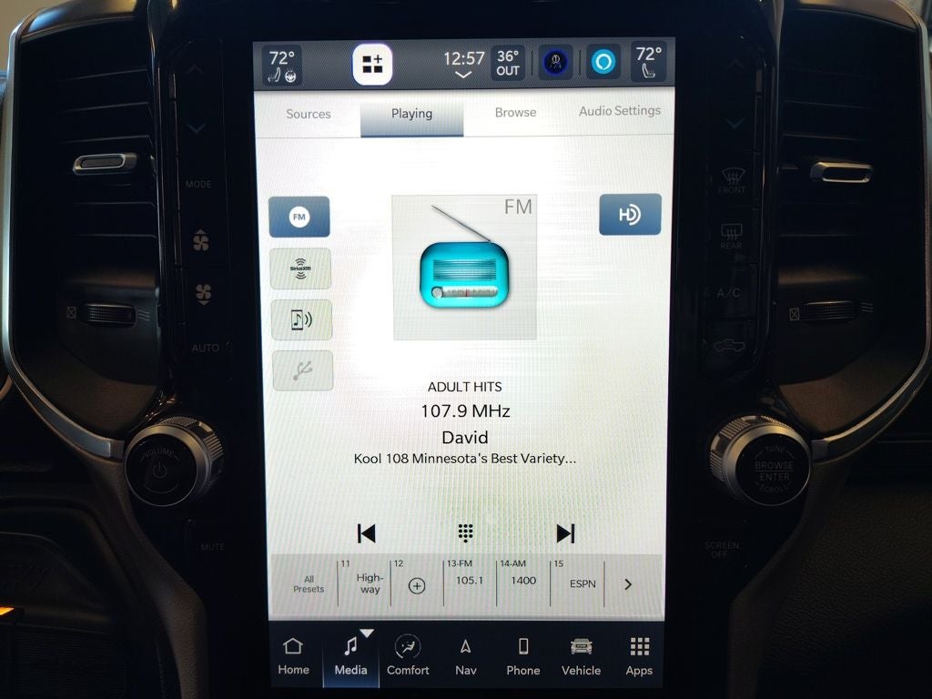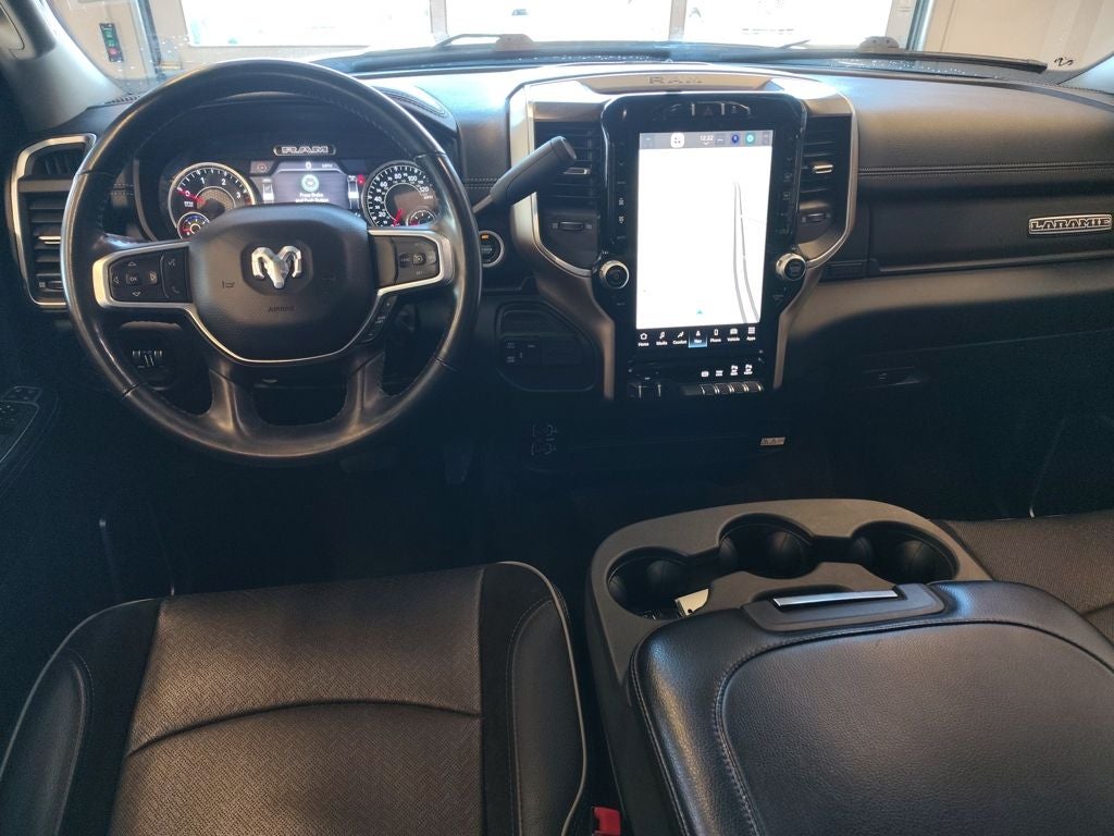 Inside, the Laramie trim with the Level 1 Equipment Group offers a refined and comfortable cabin. Leather upholstery, heated and ventilated front seats, and a heated steering wheel provide comfort in all seasons, while power driver and passenger seats with memory settings and dual-zone automatic climate control create a personalized driving experience. Additional conveniences include power adjustable pedals, a power sliding rear window, remote start, and both interior and cargo bed 120-volt power outlets.