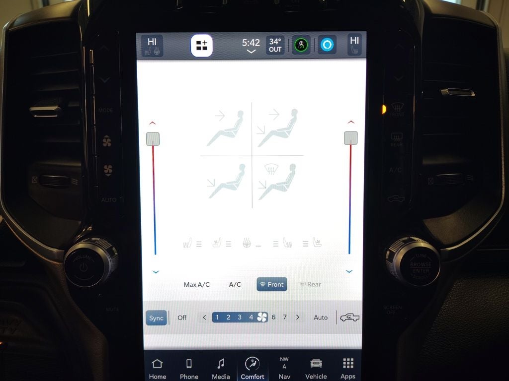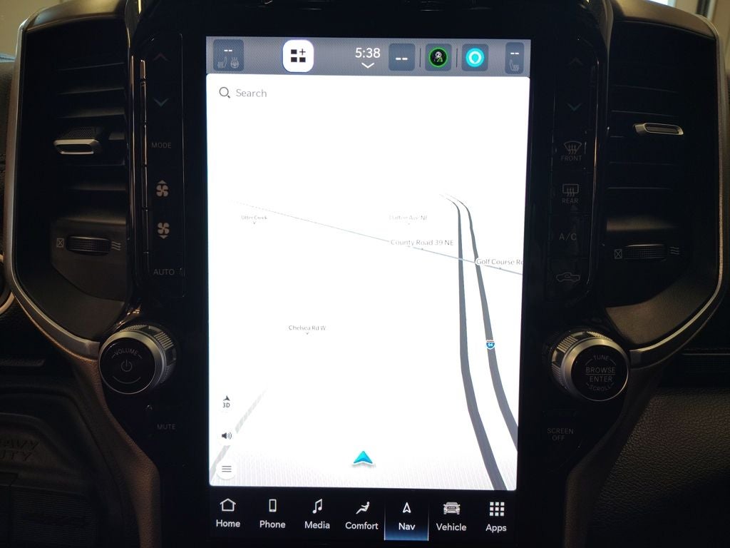The Laramie trim brings premium refinement to the Ram 2500, featuring a well-appointed interior with leather upholstery, heated and ventilated front seats, a heated steering wheel, power-adjustable pedals, memory settings, and dual-zone automatic climate control. Technology is front and center with a large 12-inch touchscreen infotainment system that includes navigation, Apple CarPlay, Android Auto, and 4G LTE Wi-Fi connectivity, all paired with a premium Alpine sound system for an elevated in-cabin experience. The Level 1 Equipment Group further enhances comfort and convenience with thoughtful upgrades throughout.